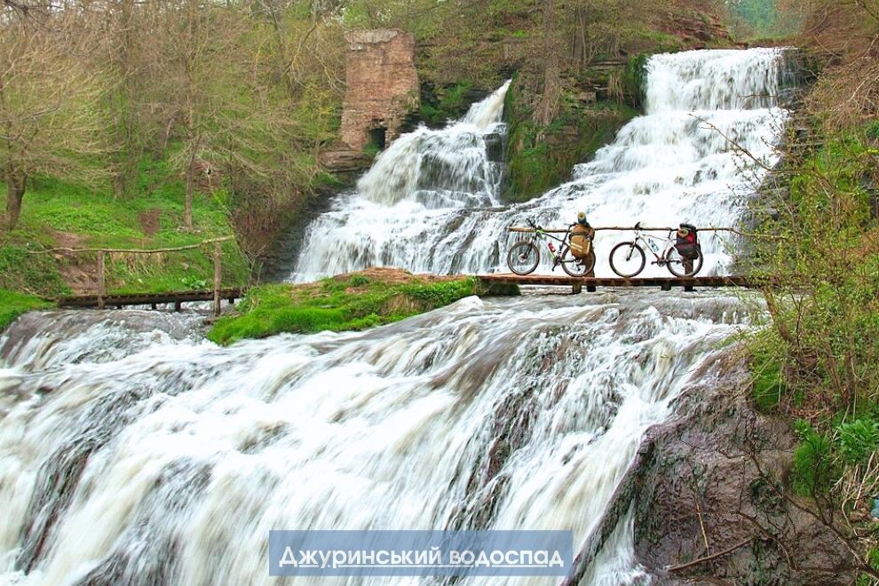 Главное природное украшение маршрута — Джуринский водопад — самый высокий равнинный водопад Украины. Его высота составляет 16 метров, а сам он производит сильное впечатление благодаря широкому каскаду воды, который спадает среди зелёных склонов каньона.
